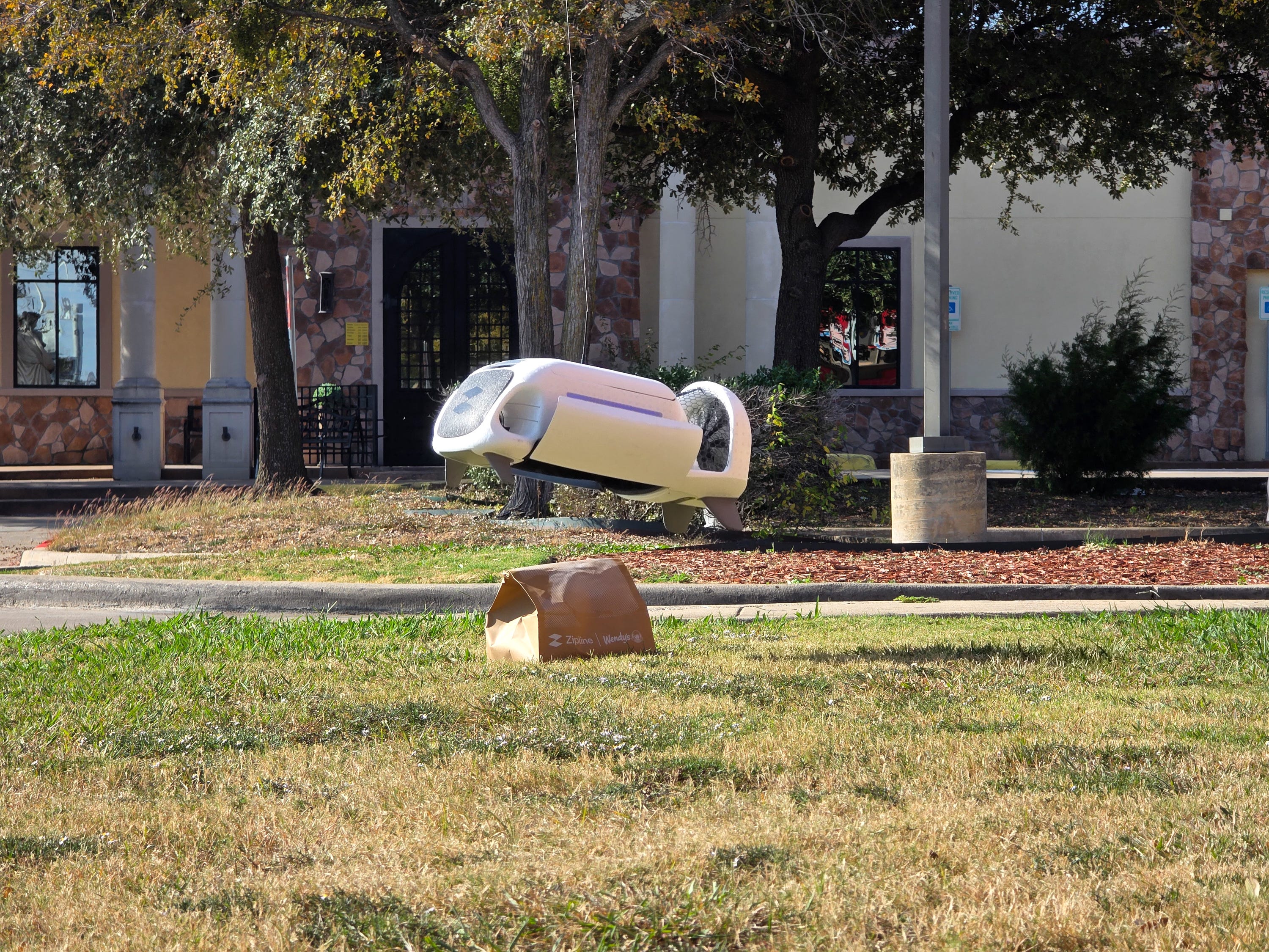 Anyhow, I wasn’t there for the seating. I was there to get me a burrito delivered via drone. Yes, I got some decidedly low-glam Chipotle sent to me through the air. At first blush, this seems like a ridiculously and unnecessarily complicated way of delivering food -- until you consider that the alternative in a town like Rowlett is for someone to roll around in a 4,000-pound vehicle that’s motivated by the controlled explosion of a highly flammable liquid.